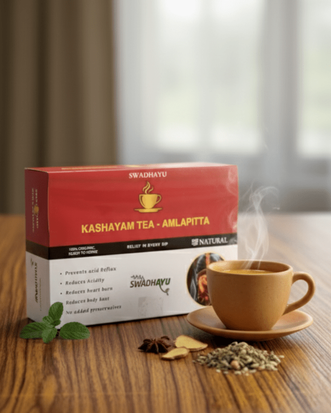 Swadhayu Kashayam tea for Acidity – This product is developed for people who are suffering from symptoms of heartburn, stomach burn, sour belching, acid reflux, GERD, acidity etc.